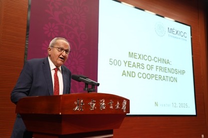 随后,施雅德大使以“墨西哥与中国:五百年的友谊与合作”为题向师生发表专题演讲。他从“马尼拉大帆船”贸易讲到今日国家战略伙伴关系,系统回顾了跨越五世纪的文明交流史。现场座无虚席,互动热烈,进一步增强了我校师生对中墨文明互鉴的理解和情感共鸣。