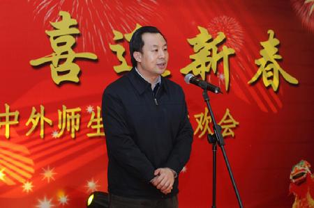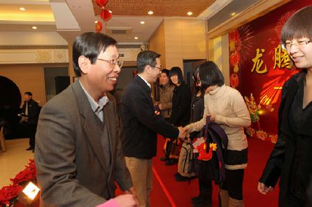 陆书记和校领导来到学校食堂,与近200名中外学生同吃年夜饭。陆书记说,与学校领导和同学们一起吃年夜饭,特别高兴。学校营造了热烈的气氛,让同学们共度除夕,这不仅仅是学校领导和老师对同学们的关爱,也从一个侧面反映出国家和社会对大学生的关心爱护。希望中国学生们用更大的作为推动国家发展和社会进步,希望外国学生都成为中外友好的使者,他对在座的中外学生送上了新春祝福。