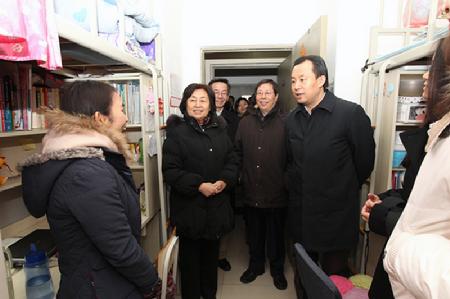 陆昊书记在王书记、崔校长陪同下看望北语学子