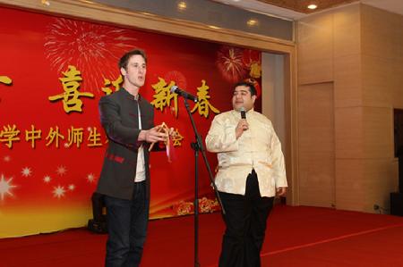 中外学生在年夜饭前一起写春联,包饺子,许多留学生都是第一次在中国过新年,埃及学生叶海亚说:“今年是我第一次在中国过春节,感觉非常热闹。过年的气氛很隆重,家家户户都贴上了春联,街上到处都挂灯笼,放鞭炮。在这我才知道春节多么重要,我对中国的文化又有了新的了解。”马来西亚学生张美芳对比了与马来西亚过春节的差异,她描述了过节期间捞鱼、拜天公和抛桔子等特色的活动,中外师生在一起其乐融融。