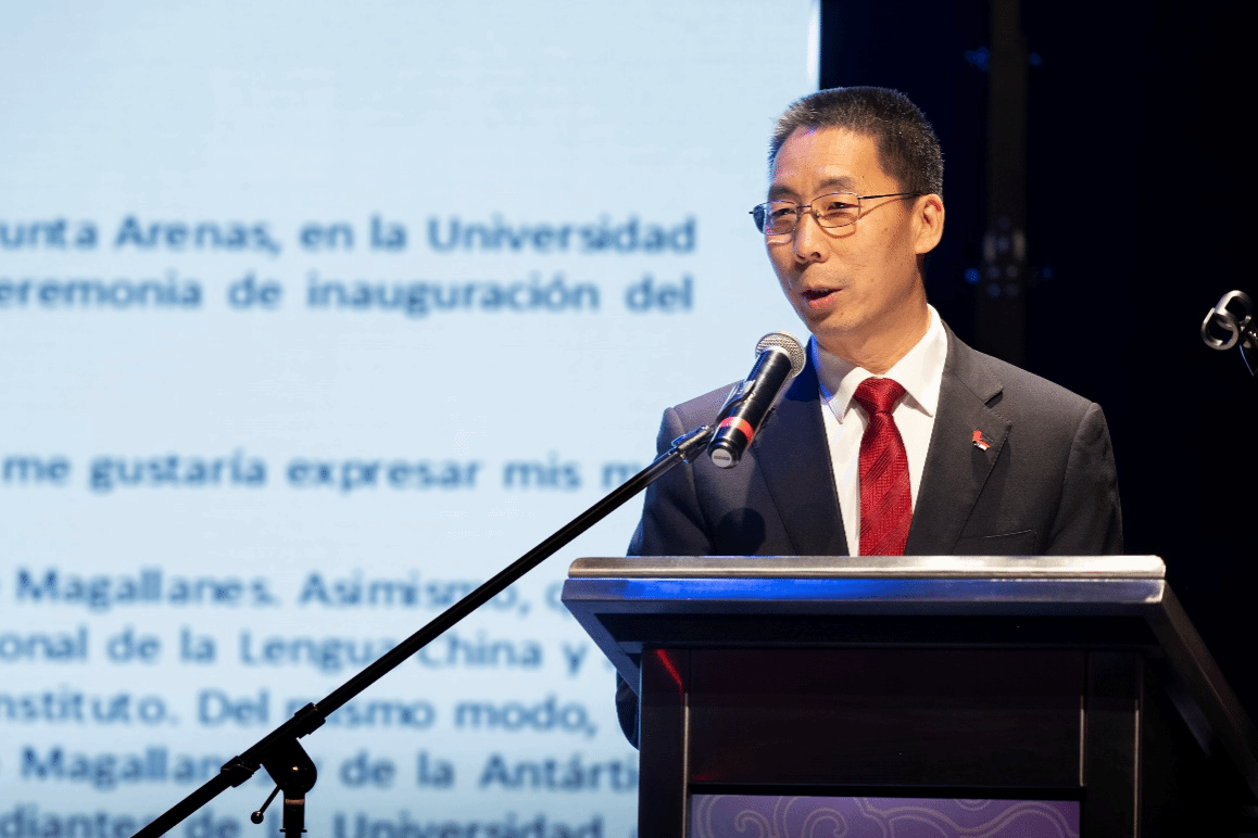 牛清报大使在致辞中代表中国驻智利大使馆对麦哲伦大学孔子学院的成立表示热烈祝贺。牛大使指出,麦哲伦大学孔子学院的成立,不仅填补了当地中文教学的空白,丰富了区域教育资源,也进一步拓展了跨文化对话的广度与深度,为中外文明间的交流与对话开辟了更广阔的边界。