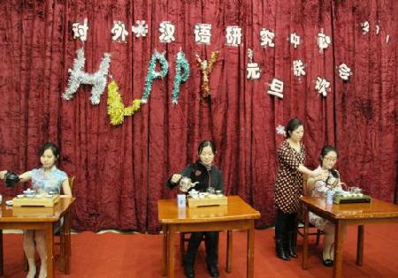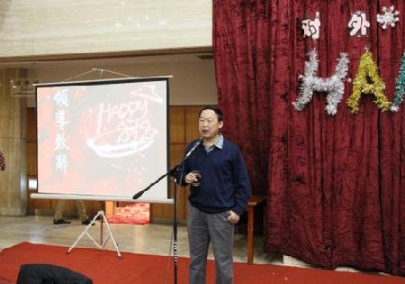 12月26日晚,对外汉语研究中心2012年元旦晚会在会议中心浓情上演。晚会集多种表演形式于一体,中心全体师生在温馨和谐的氛围中迎接即将到来的新年。中心副主任王建勤教授为晚会致开场词,他肯定了过去一年中心师生取得的成绩,并预祝全体学生在新的一年里取得全方面的进步,语言真切幽默,让现场气氛热闹而温暖。
