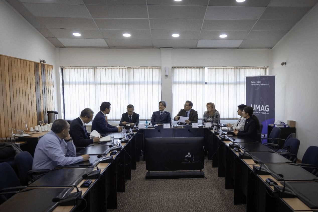 揭牌仪式后,代表团与麦哲伦大学校长何塞·马里帕尼(José Maripani)、副校长玛丽拉·阿拉尔孔(Mariela Alarcón)、国际合作处处长兼孔子学院外方院长贝巴·加西亚(Beba García)、教育与社会科学学院教育学系主任毛里西奥·阿古亚约(Mauricio Aguayo)等学校领导举行了工作会议。