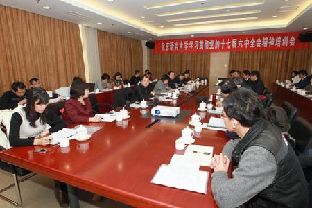 12月16日-17日,我校举行十七届六中全会精神及《中国共产党普通高等学校基层组织工作条例》学习培训会,党委书记王路江、党委副书记赵旻出席会议并分别做学习十七届六中全会精神动员报告和学习《中国共产党普通高等学校基层组织工作条例》动员报告。党委常委、组织部长郁有学主持了培训会。分党委、党总支、直属党支部书记及党委职能部门负责人参加了此次培训会。
