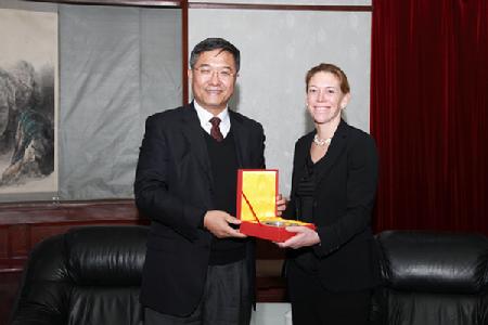 12月16日上午,美国“十万人留学中国计划”座谈会在我校逸夫楼报告厅召开。会前,戚德祥副校长在逸夫楼聚贤厅亲切会见了前来参加会议的美国国务院负责东亚和太平洋事务的助理国务卿高级顾问、“十万人留学中国计划”主任卡罗拉·麦吉弗特女士,并向卡罗拉女士介绍了学校的基本情况和美国留学生来校学习情况。