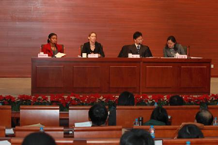 本次座谈会由教育部国际合作与交流司委托我校留学生处承办,国际司美大处杨军处长和来华处田露露副处长主持会议,与会代表主要是来自32所中国政府奖学金院校的留学生工作负责人和国际合作与交流处处长。会上,卡罗拉女士介绍了美国“十万人留学中国计划”最新进展,并就与会代表关心的美国学生来华学习事宜进行了对话交流。
