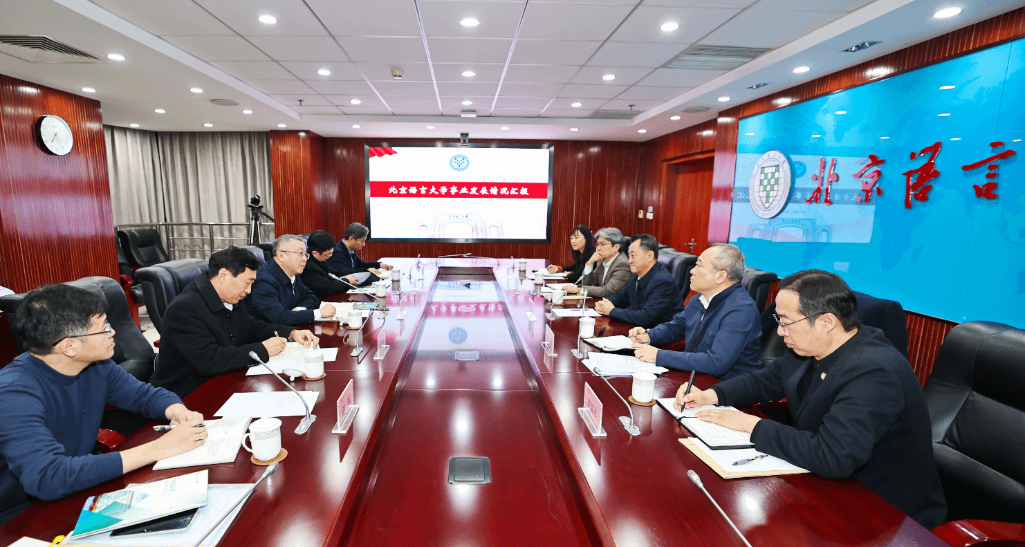 段鹏校长围绕学科支撑、人才培养、“引进来”和“走出去”、育人环境和文化氛围建设等方面汇报了学校近两年来所取得的一系列办学成果。并表示,面向未来,北语将持续深刻理解和把握“两个大局”,把服务中外文明交流互鉴作为办学使命和发展的主轴,聚焦优势领域和重点区域,拓展优势特色和发展潜力,改革创新、争创一流。