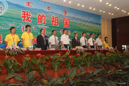 7月26日晚,我的祖国—京港澳学生交流营2011闭营仪式在内蒙古大学隆重举行。内蒙古自治区党委常委曹征海宣布本届交流闭营,内蒙古自治区教育厅厅长李东昇,教育部港澳台事务办公室常务副主任赵灵山,内蒙古大学校长陈国庆、副校长齐木德道尔古,北京语言大学党委副书记、本届交流营营长赵旻,香港新一代文化协会总干事苏祉祺,澳门中华学生联合总会副理事长黄俊杰等出席了闭营式。300名京港澳三地营员参加了闭营式。