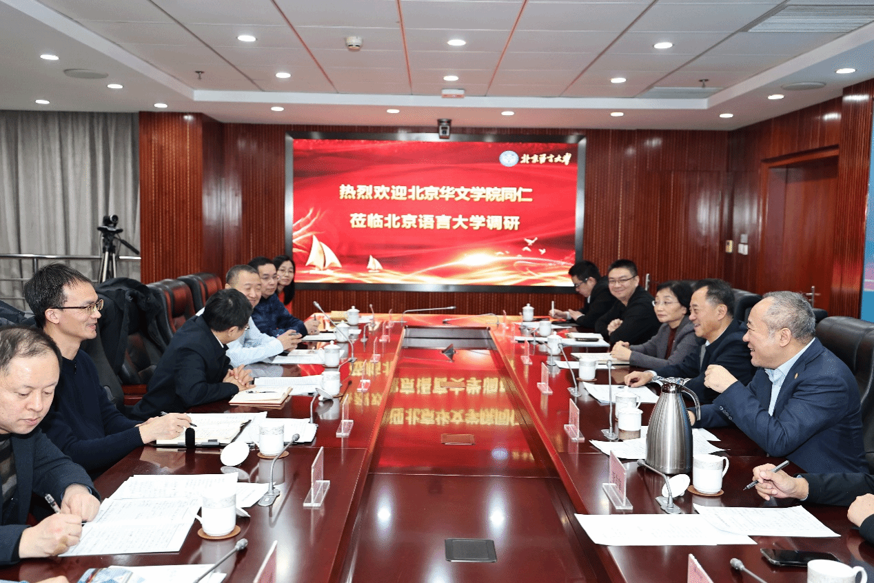 北语新闻网1月8日电(通讯员 卢天然 摄影 魏达)近日,为落实中央统战部副部长、国务院侨办主任陈旭此前莅临北京语言大学调研指导时的工作要求,北京华文学院党委书记张衍前、院长王志民一行到访北京语言大学,围绕华文教育创新发展、人才联合培养、资源共享共建等核心议题开展调研座谈。党委书记倪海东、校长段鹏参加调研,党委常委、统战部部长吕静,校长助理、学校办公室主任李志坚及相关部门负责人陪同座谈。