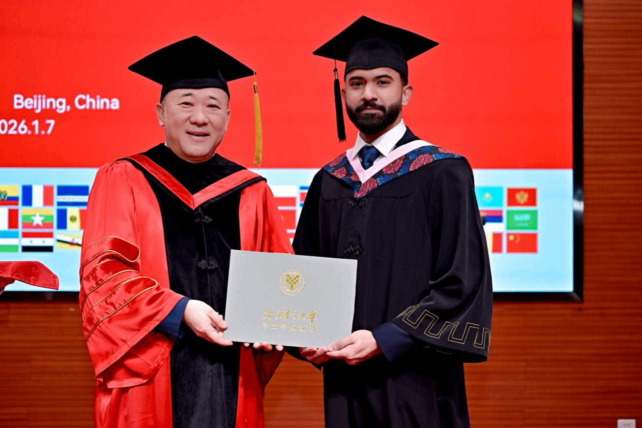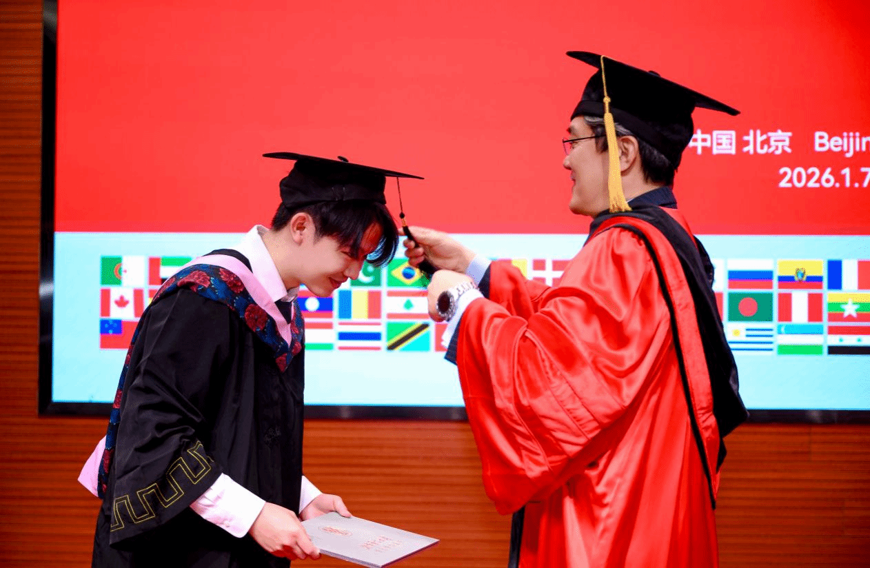 北语新闻网1月12日电(通讯员 邵磊 摄影 魏达)1月7日上午,北京语言大学2026届春季毕业典礼暨学位授予仪式于逸夫报告厅举行。来自21个国家和地区的140名本硕博毕业生齐聚一堂,带着母校的期许与祝福,即将奔赴全球各地开启人生新征程。北京语言大学校友、斯里兰卡驻华大使马金达・贾升和、斯里兰卡驻华公使衔参赞苏木杜・威尔帕纳与斯里兰卡驻华公使衔参赞尼兰卡・帕利帕纳等嘉宾莅临现场,100余位来自韩国、摩洛哥等国的毕业生亲友到场祝贺。