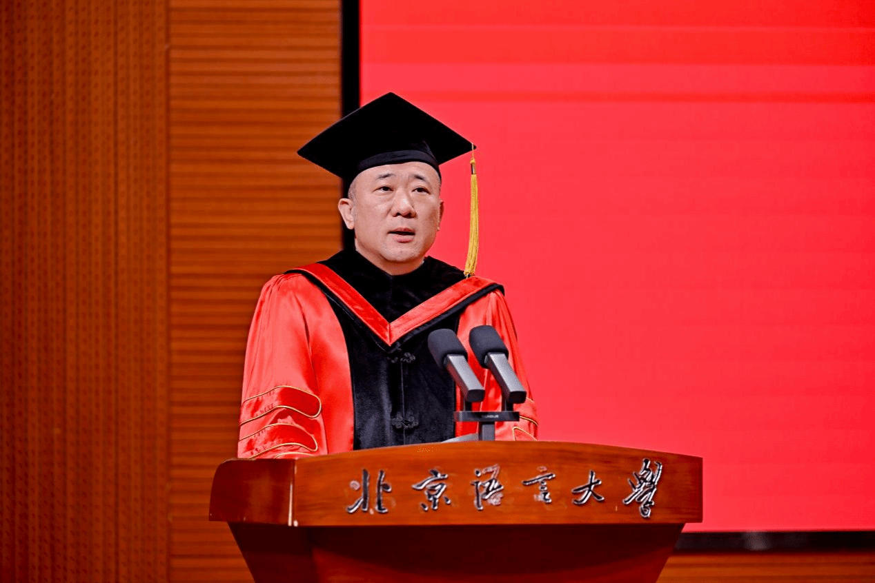 校长段鹏教授对毕业生致以特烈祝贺,在题为《以梦为马 以行践诺 勇赴未来》的致辞中,段鹏校长回顾了毕业生们的求学时光,同学们在校求学期间,亲历了母校在国际化征程上的稳步拓展,包括海南国际学院、雄安校区建设推进,全球29所孔子学院和孔子课堂的优化升级,以及哈萨克斯坦分校等海外办学点的建立,更见证了中国在科技、民生等领域的飞速发展。面对未来,段鹏校长送上三点殷切寄语:“一是以语言为舟楫,做文明互鉴的深耕者,透过语言理解不同文明的思维模式与价值观念;二是以行动为笔墨,做青年力量的诠释者,将学识转化为促进国际友好的实际行动;三是以天下为襟怀,做人类未来的建设者,践行人类命运共同体理念,为世界和平与发展贡献北语人的一份担当!”