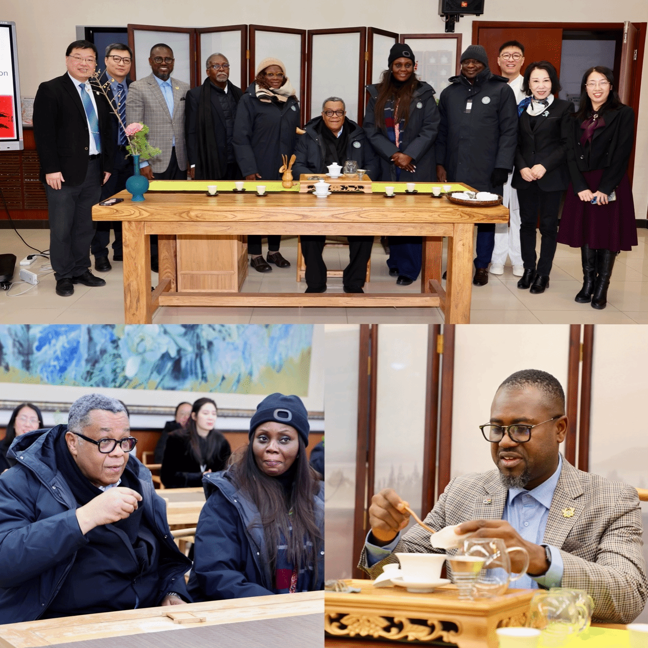 代表团一行还来到应用中文学院茶学堂,沉浸式体验中国传统茶文化。在专业教师引导下,嘉宾们系统了解中国茶的历史渊源、礼仪规范与审美内涵,并亲手参与温杯、投茶、冲泡等环节。通过近距离体验,代表团成员切身感受到中国茶文化所蕴含的“和合”理念与生活美学。