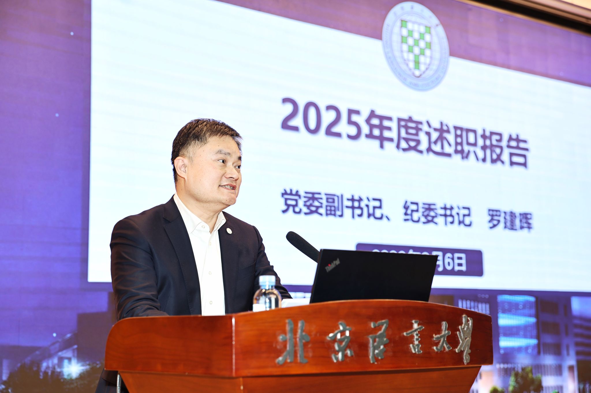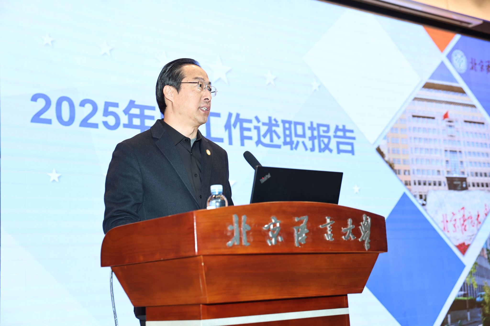 倪海东书记在代表学校领导班子述职中指出,一年来,学校党委坚持以习近平新时代中国特色社会主义思想为根本遵循,深入学习贯彻党的二十大和二十届历次全会精神,全面落实全国教育大会部署要求,坚决扛起管党治党、办学治校主体责任,牢牢把握立德树人根本任务,聚力“双一流”建设,推动学校各项事业迈上新台阶,在服务国家战略和首都发展大局中取得了新的实质性进展。他强调,2026年将是我校启动实施“十五五”规划、迈向更高发展阶段的启航之年。学校领导班子将坚定不移以习近平新时代中国特色社会主义思想为指导,紧密围绕立德树人根本任务,以服务国家战略和构建人类命运共同体为使命,以深入推进“双一流”建设与学科创新为引擎,持续深入推进“三强三新”学科建设,积极培育新兴交叉方向,深度参与全球文明对话与人文交流,全面提升人才培养的全球竞争力和贡献力。