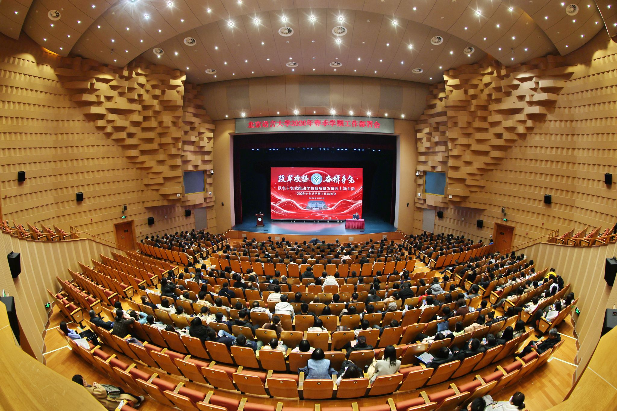 段鹏校长充分总结了过去一年学校可圈可点的办学成果,他指出,过去一年,在教育部党组的关心支持下,在学校党委的团结带领下,学校认真贯彻落实习近平总书记重要指示精神,全体教职员工同心同德、真抓实干,把习近平总书记的嘱托转化为工作实效,在服务中外文明交流互鉴方面取得一系列高显示度成果,在事业发展、办学条件保障方面取得多项突出成效。学校人才培养提质扩容,生源规模结构均得到优化,创新设立了国内首个“世界汉学与中国学国际人才实验班”,圆满完成本科教学审核评估;学科实力持续提升,“三强三新”学科建设深入推进,软科“中国最好学科排名”中中国语言文学和区域国别学均为历史最高位次;科研平台、项目等成果斐然,获批“国际传播重点基地”、新增“111”引智基地,科研经费再次实现大幅增长;国际交流合作格局不断拓展,涉外办学取得突破性成果,填补了学历教育中外合作办学机构空白;师资队伍建设不断加强,职称评聘和评价考核机制持续完善;资源保障能力全面提升,校内基础设施建设扎实推进,海南国际学院三栋专享楼正式封顶,办学经费实现层级跃升;师生幸福感获得感也日益增强,运动生活学习条件进一步改善,多项民生实事有效落实。段鹏校长表示,成绩的取得离不开全体教职员工的努力和付出,并向为学校发展付出辛勤汗水的老师们表示衷心感谢。