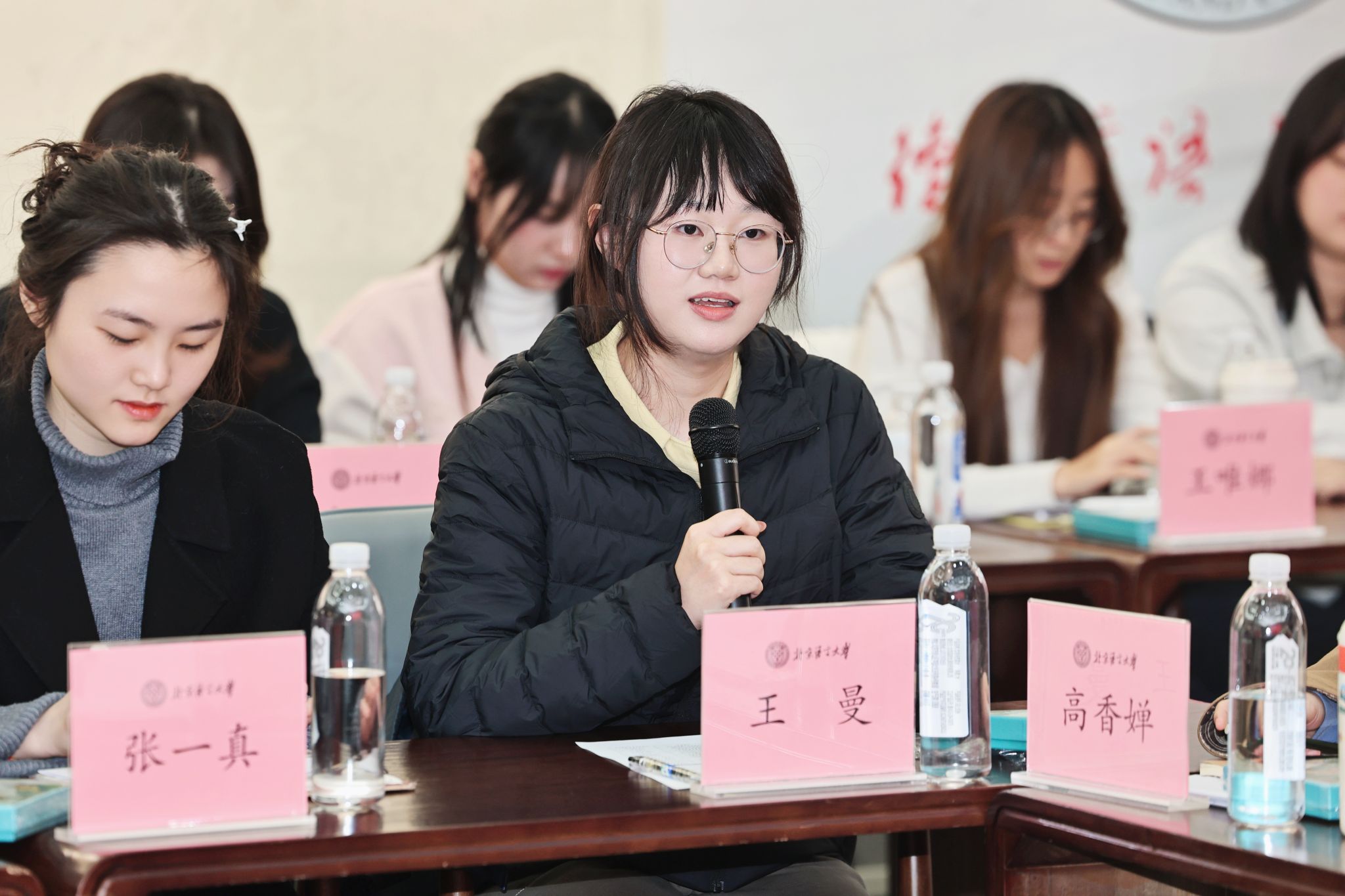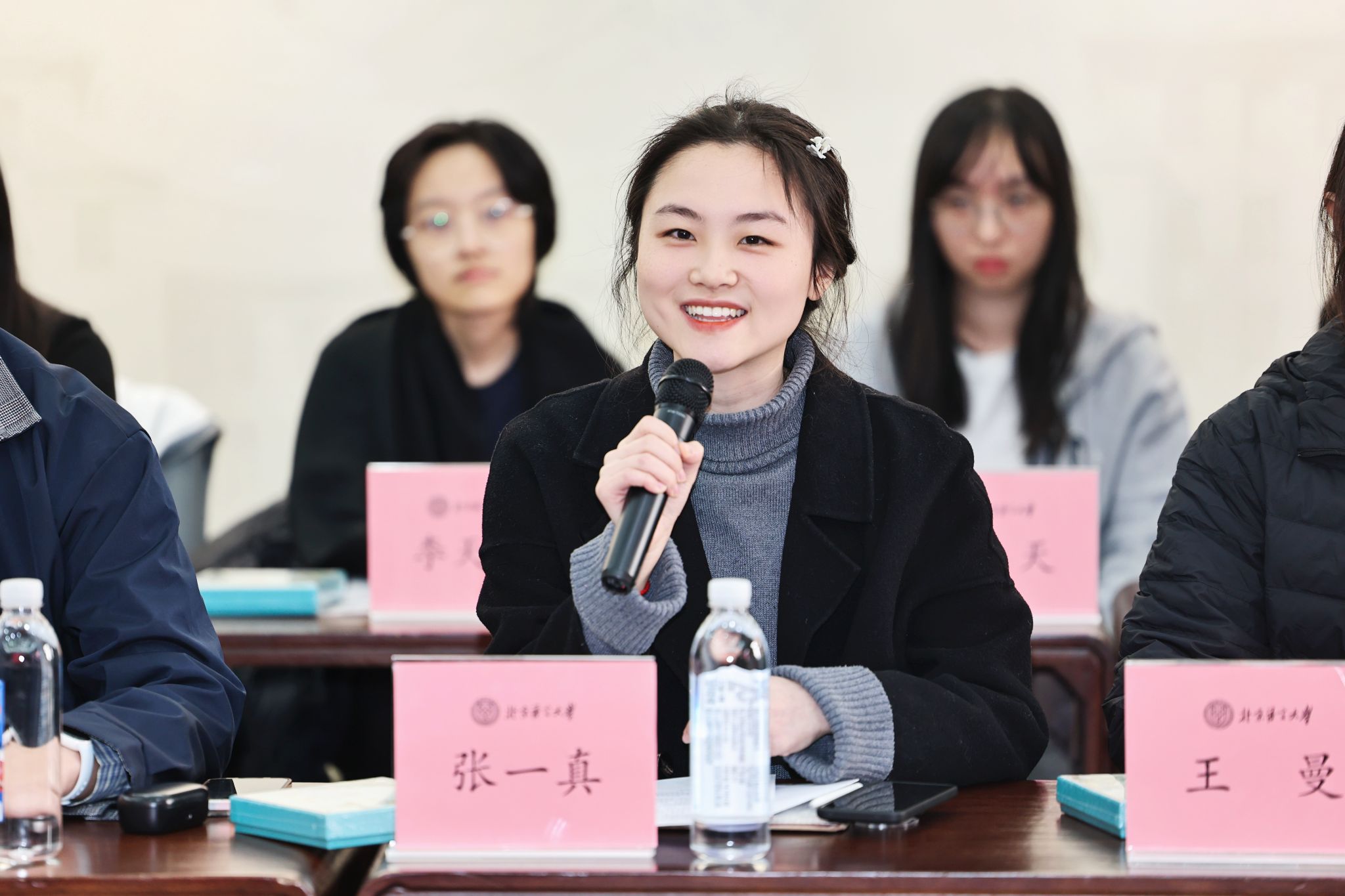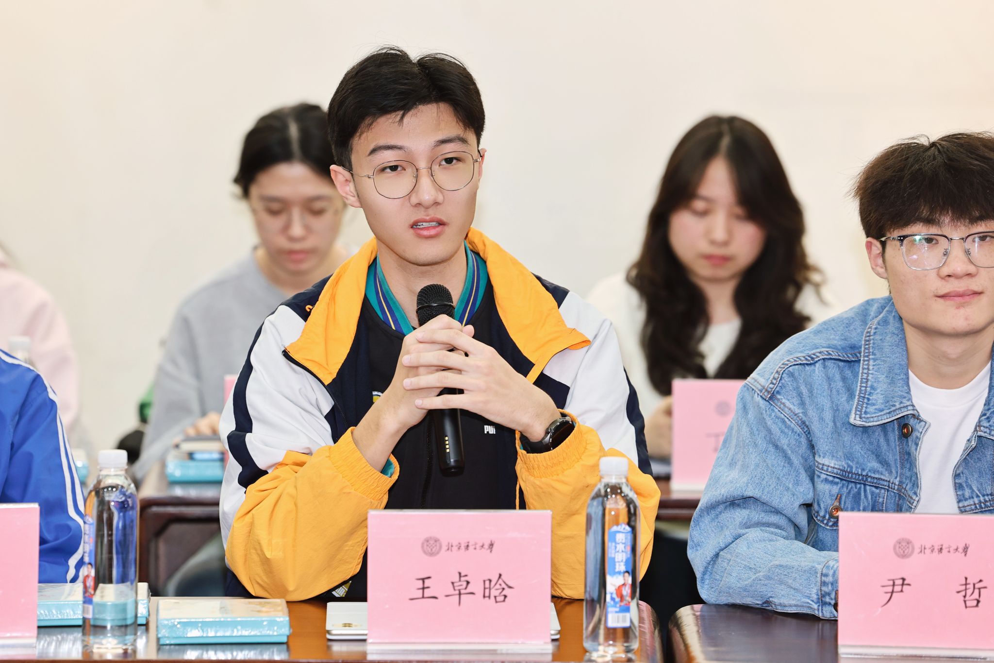 在座谈环节中,来自文学院的张一真分享了自己担任院研究生会执行主席、参加北京市青马班的经历,在北京市志愿服务联合会实习期间,她深刻感受到了北语学子服务国家、奉献社会的使命担当;来自英语和高级翻译学院的李子文分享了自己切身感受到的学校快速发展,从国际传播、全球治理领域的深耕拓展,到人才培养模式的不断创新,北语培养的是懂语言、更懂世界的新时代青年;来自国际政治与传播学院的尹哲分享了自己深度参与世界文化节、纪念抗战胜利80周年大会的经历,从活动的体验者转变为服务的提供者,“德行言语,敦睦天下”的校训内化于心、外化于行,切实感受到国际化视野和跨文化沟通能力的跃升。