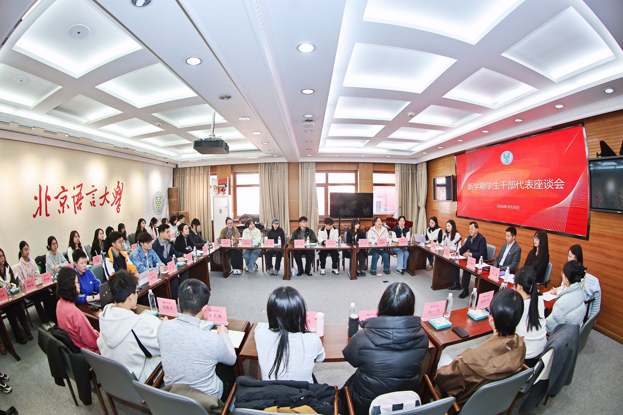 通过新学期开学第一课的深度交流,进一步加深了学生干部对学校跨越式发展阶段的理解与认同。同学们纷纷表示,将以更加昂扬的姿态投身学习工作,充分发挥桥梁纽带作用,团结带领广大同学理解支持学校改革发展,为把北京语言大学建设成为中国特色世界一流语言大学贡献青春力量。党委学工部、校团委负责人参加活动。