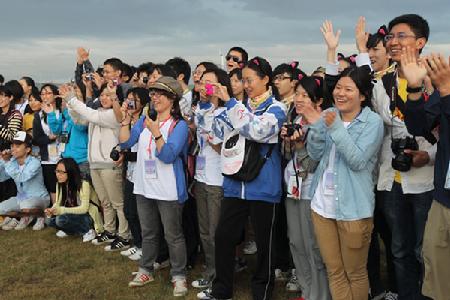 7月24日,清晨的微风中,结束了在北京的数日旅程,一列浩浩荡荡的车队载着“我的祖国——2011京港澳学生交流营”300余名营员行驶在中国北方广袤的大地上。越过崇山峻岭,穿过坦荡平原,伴随着阵阵开心的笑声和欢快的歌声,车队进入内蒙古地界,来到了一望无垠的西蒙卓兹辉腾格勒大草原。