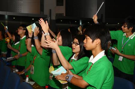 一位香港营员更是掩饰不住内心的激动:“晚会上我是从头喊到尾,简直太棒了!尤其是到晚会后半部分,大家都玩开了,不顾及地域的差异。这让我感受到一个真正团队的力量!”“这是我第三次来北京,第一次也是参加一个营,第二次是毕业旅行。今天的晚会很精彩,大家玩得很high,让我觉得好像并没有离开澳门一样,我们那儿的晚会也是这样丰富的、轻松愉快的。”澳门的营员如是说。
