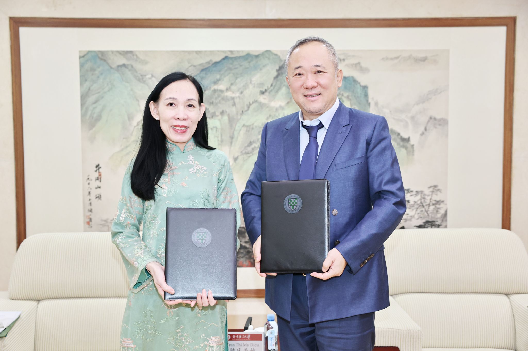 随后,段鹏校长与陈氏美妙校长签署了两校学术合作备忘录。双方就人才培养、学术科研、常态化合作机制等议题达成广泛共识,一致同意以此次签署备忘录为新起点,拓展合作领域、提升合作水平,助力中越高等教育协同发展与青年友好传承。
