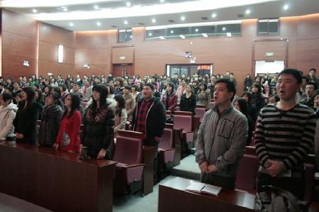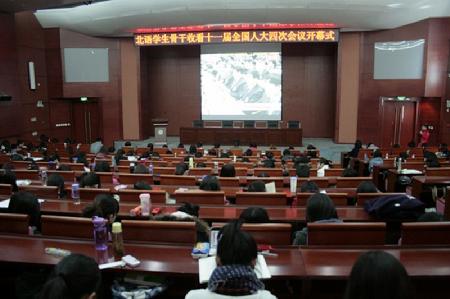 为推动青年学生深入学习两会精神,3月5日上午,校团委组织我校学生骨干在逸夫报告厅集体收看了十一届全国人大四次会议开幕式。校团委全体干部以及校学生会、社团理事会、志愿服务总队、中外艺术团、红十字会学生代表,各分团委、团总支学生代表和2010级燎原学生骨干班全体成员一同参加了此次活动。