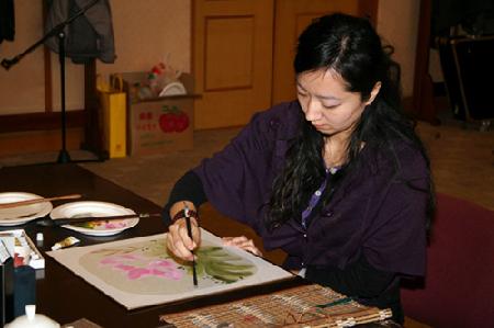 茶话会上,速成学院李桂荣老师向大家展示了自己的十字绣作品;校团委田超老师表演了扬琴独奏;艺术系王杨老师现场挥毫创作《荷花图》;人文学院陈戎女老师演唱了一首《传奇》;信息科学学院陈霞老师带来了声情并茂的朗诵;小合唱《同一首歌》展示了女教授们的声乐才华,将现场气氛带入了高潮。