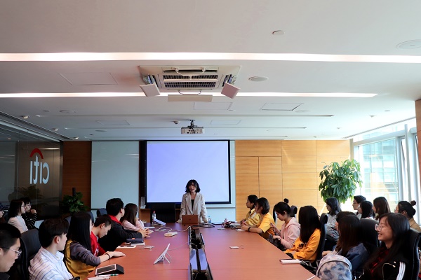 首先,花旗银行的工作人员从银行的发展史入手,向同学们介绍了作为全球四大投行之一的花旗银行发展历程中的关键节点和丰富多彩的企业文化。紧接着,她针对同学们比较关心的问题简要介绍了花旗的主要业务分类、团队工作氛围和职员的发展机遇、晋升机制、工资薪酬和福利待遇。过程中,同学们积极参与互动,举手提问,现场气氛热烈。