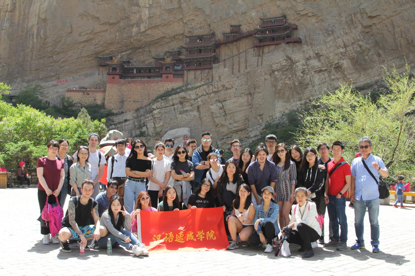 十六日早晨来到应县木塔,在这里,同学们跟随导游的讲解,了解到与普通木结构建筑用钉、铆连接不同,应县木塔用了五十四种斗拱拼接而成,应县木塔让同学们惊叹于中国建筑古老的智慧。下午到达的悬空寺也是一组神奇的木结构建筑。从山脚仰望悬空寺,一组精美的木质建筑悬挂在陡峭的岩壁上,旁边是李白题写的斗大的“壮观”二字。用“奇、悬、巧”三个字概括悬空寺的建筑特色真是太准确了。悬空寺里供奉着儒、释、道三教,学生们在这里第一次看到中国三教合一的寺庙。