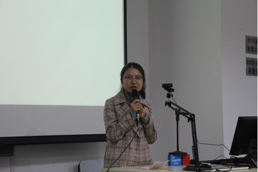 第三位演讲嘉宾是穆思宇学姐,现任职于中华人民共和国商务部配额许可证事务局。学姐热情地为大家介绍了多种查询招聘信息渠道,并叮嘱同学们,实习经历远比工资数额更加重要。