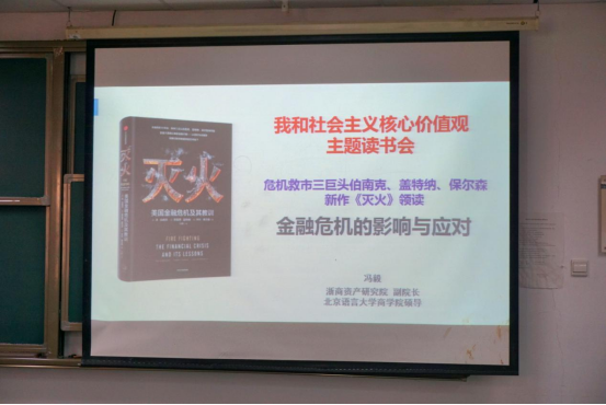 由于受到疫情影响,远在上海的冯毅博士不能亲自到现场为同学们讲解,为此,冯毅博士专门为本次主题读书会录制了视频。在视频中,冯毅博士把一个个晦涩难懂的概念、复杂的经济联系进行生动形象地讲解,让同学们对2008年金融危机以及后危机时代的世界经济发展有了更加全面的认识和理解。