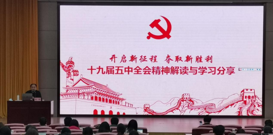 张阳书记为大家系统梳理了公报的内容,列举了决胜全面建成小康社会取得的10大决定性成就、“十四五”时期经济社会发展的6大主要目标以及实现奋斗目标的12项具体举措。他指出:党的十九届五中全会是我们党在全面建成小康社会、全面建成社会主义现代化国家新征程即将开启的重要历史时刻召开的一次十分重要的会议,是我国即将进入新发展阶段、实现中华民族伟大复兴正处于关键时期召开的一次具有全局性、历史性意义的会议。