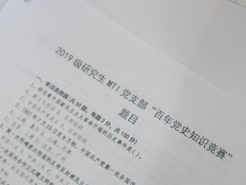 4月16日下午,外国语学部研究生MTI党支部在教五楼311会议室举办“学党史 悟思想 比知识”党史活动周之“百年党史知识竞赛”活动,本次活动以线下答题的形式举办。