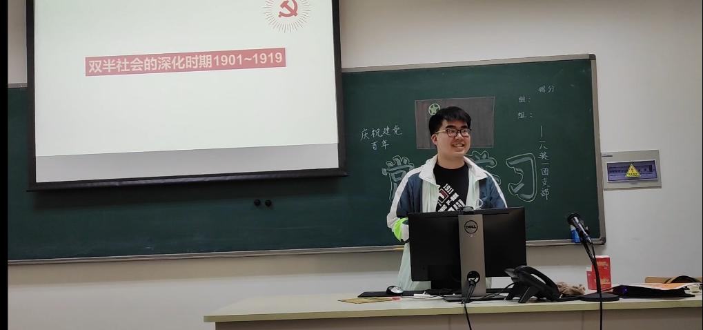 会议第一部分,由团支书讲解近代史与党史。团支书将1911~1949的历史分为数个阶段,对重要事件按照时间线索和逻辑顺序进行了讲解,并在过程中随时抽问,互动效果良好,同学们热情高涨。