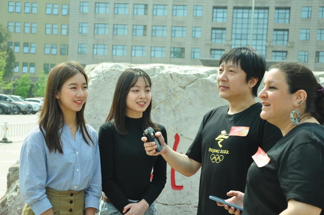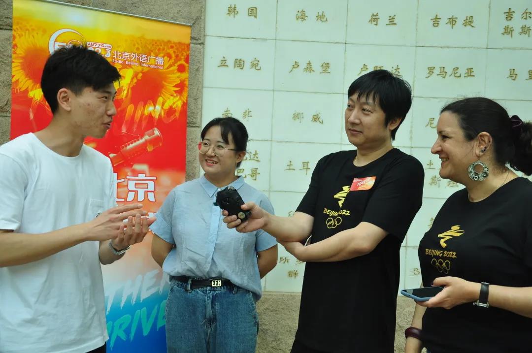4月27日下午,北京广播电视台外语广播 “感受北京与城市共成长 Touch Beijing —Together We Thrive”系列视频直播活动在北京语言大学顺利开展。本次节目精心选择了北京语言大学东校门、图书馆及万国墙等标志性地点进行录制,节目由北京外语广播电台主持人Bryan和Gail主持,来自人文社会科学学部、外国语学部的6名学生共同参与直播。