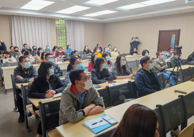 本次双语党课以“学党史:时政热词的外宣英译”为题,从常见问题示例、时政热词英译的准确性、可读性三个方面,结合多年的教学经验,为大家深入浅出地解读了十八大以来治党治国理念英译实例,甚至囊括了刚刚过去的中美代表会晤过程中的金句翻译,更涉及了知识产权与专利相关内容的翻译方法,具有很强的时效性与针对性。党课内容丰富,重点突出,且十分风趣幽默。大家在欢笑之余,学到了大量含金量极高的词句,纷纷感叹受益匪浅。