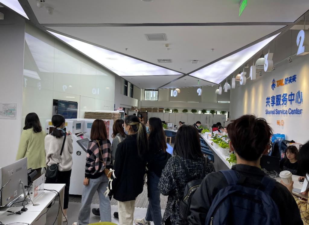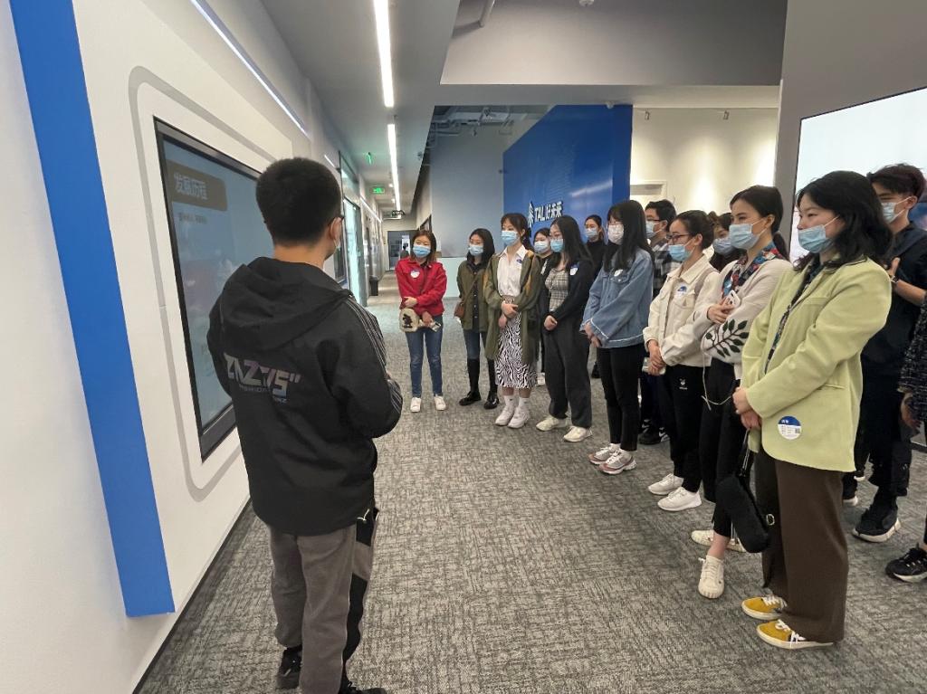 在集团总部展厅内,同学们还亲身体验了智慧课堂、AI语言学习系统、AI智能监课系统等产品,并通过宣讲和交流环节得以了解教育培训行业的发展现状、运作方式、工作环境等,既开阔了眼界,也更明确了职业方向。