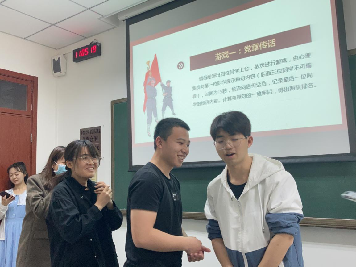 知识讲解环节结束后,进入实践互动环节。围绕前一部分的党史知识,班委们为大家准备了四个实践活动,对同学们的快速记忆能力和党史知识储备进行考验。全体同学踊跃参与,将团日活动的氛围推向了高潮。