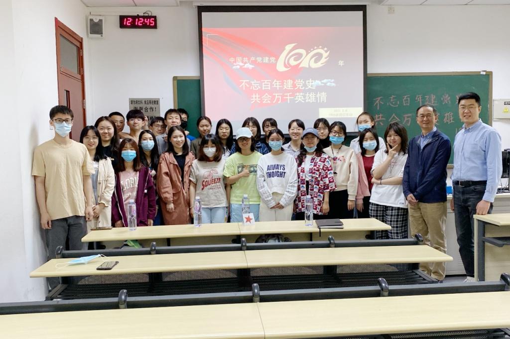 团支部4位学生代表分别从“党的发展历程概述”、“党的重要历史人物”、“党徽党旗的由来”和“青年对于党章的理解”四个角度,向大家讲解相关党史知识。