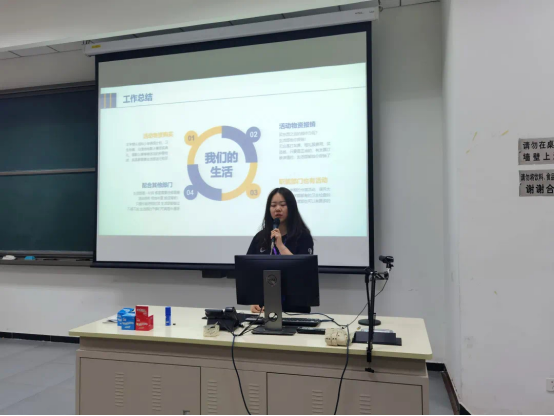 各部门部长依次对部门工作进行总结。部长们对一个多学期以来部门的工作内容做了完整的总结,展现了部门内积极向上的工作氛围,也肯定了干事们的工作能力与工作态度。随着相处时间增加,部门成员之间的了解也逐步加深,干事们的主动性也有所提高,工作效率大幅提升,每次活动结束后都能有所感悟、有所收获。
