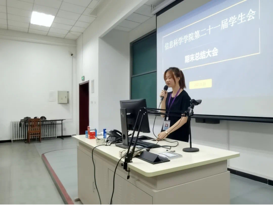 5月28日晚7点,信息科学学院第二十一届学生会期末总结大会在主南200顺利举办。出席本次大会的有信息科学学院辅导员王晶老师、信息科学学院第二十一届团总支学生会秘书长王丹、信息科学学院第二十一届学生会主席团以及各部门部长与干事。办公室干事马楷杰担任本次大会主持人。