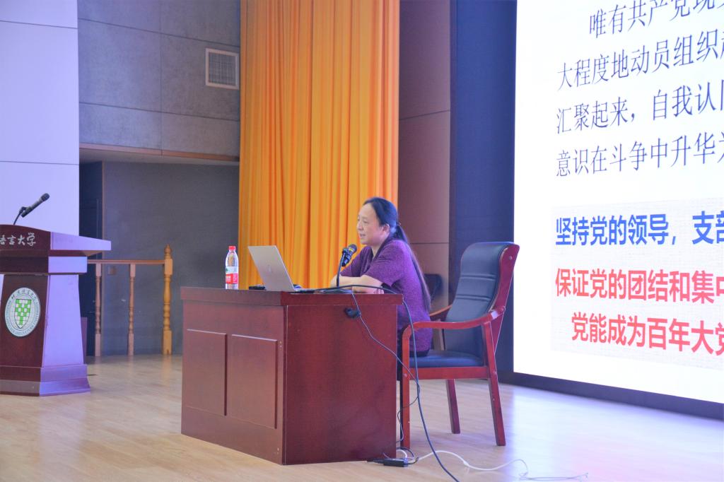 6月18日晚,学部邀请方新教授来为学员们讲授专家党课,会议由学部党委书记梁清主持。方新教授毕业于清华大学技术经济专业,是中国科学院大学公共政策与管理学院教授,博士生导师,发展中国家科学院院士,中国科学学与科技政策研究会名誉理事长,中国女科技工作者协会常务副理事长。方新教授以“回望百年路 奋进新征程”为题,从共产党员的初心讲起,根据丰富的历史资料,回顾了中国共产党一百年的光辉历程,从四个方面系统阐述了我们要坚持党的领导,坚持实事求是,爱国为民,甘于奉献。方新教授还通过我国科学家的感人事迹,激励学员们要把服务国家、服务人民作为己任。通过方新教授的报告,学员们对加入党组织有了更加深刻的认识,对共产党人的理想信念有了更明确的了解。是历史、实践和人民选择了跟着中国共产党走,只有坚持党的领导,才能实现国强民富,民族复兴。