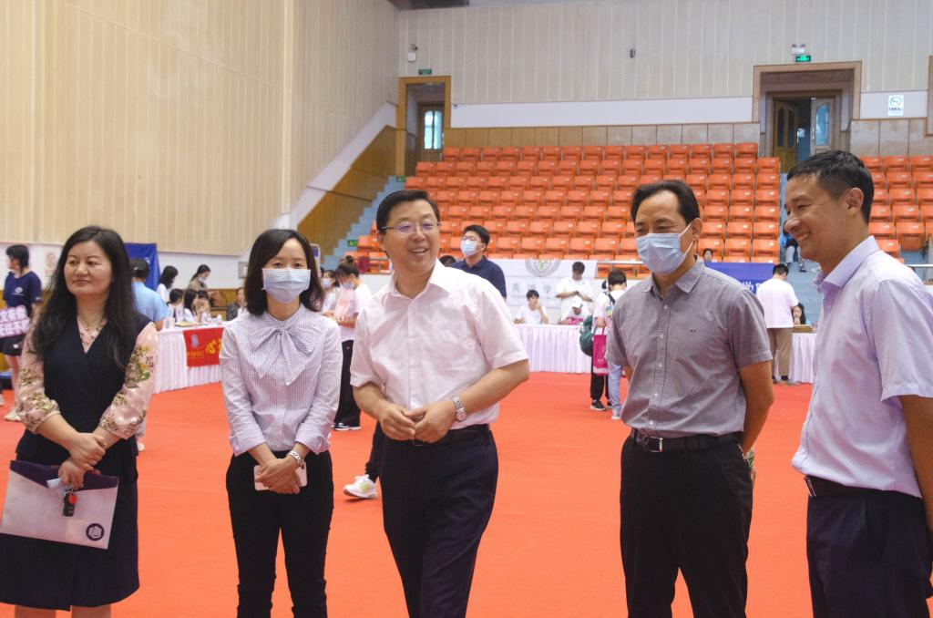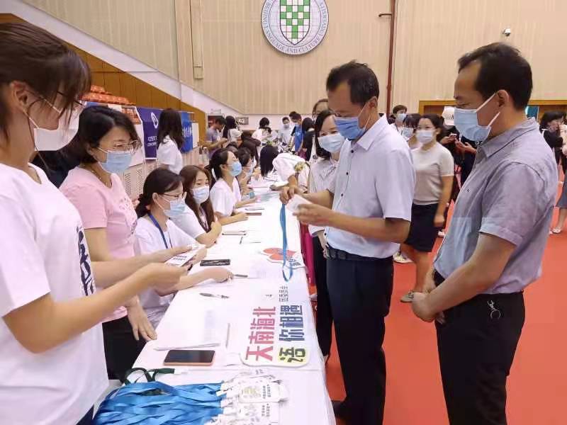 9月11日,北京语言大学商学院2021级本科生迎新工作在逸夫体育馆顺利开展。学校党委书记倪海东、校长刘利等领导莅临商学院迎新现场,详细询问招生情况和新生报到情况。