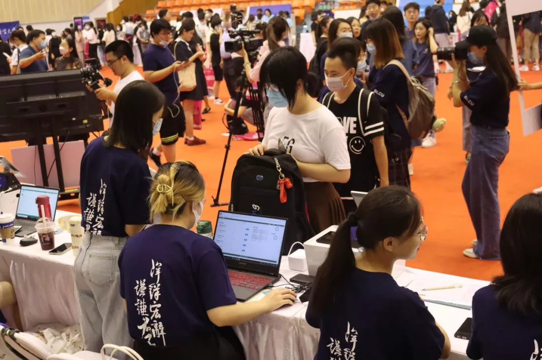 9月11日,北京语言大学人文社会科学学部2021级本科生报到工作在逸夫体育馆顺利举行。今年,253名本科新生在人文社会科学学部迎新工作组的帮助下,顺利完成报到注册等任务,正式开启了自己的大学生活。