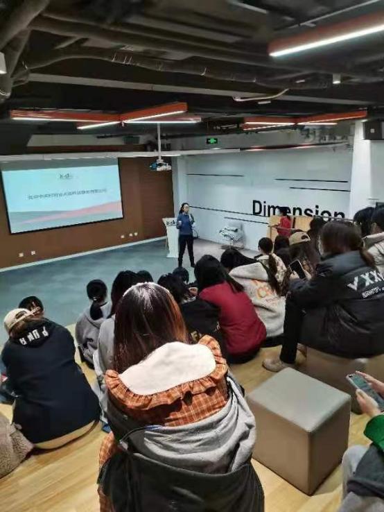 随后,大街落地企业太极图形HRD分享了创业企业管理模式与成长期组织治理经验。大街人事经理王晨辰从学生个人成长角度向学生们介绍了科技型创新企业人才成长路径,及选人用人案例,分享了优秀的创业者具备的能力模型需要有内心强大、体魄坚强,宽知识口径、深专业纵深、强外语沟通,具有不断自我学习的迭代能力。鼓励同学们用好北语提供的学习平台,也期待在未来实习或工作面试中看到来自北语商学院的优秀申请者。