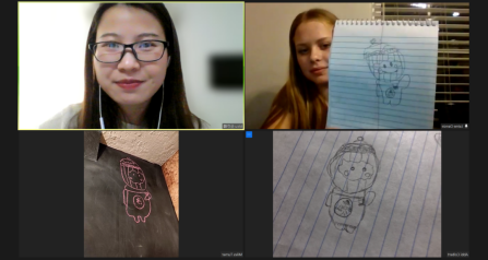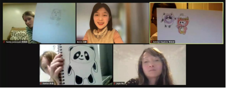 在随后语伴带动的第一次学习互动中,学员们唱起了冬奥会主题口号推广歌曲《一起向未来》,跳起了手势舞还了描画了冬奥会的吉祥物“冰墩墩”和“雪容融”。伴随着“我们都需要爱,大家把手都牵起来,Together for a shared future,一起来,一起向未来。”的旋律,这首学员们在语伴的带领下,一字一顿地念出“一起向未来”,一笔一划地描绘出可爱又生动的吉祥物,欢乐温暖的氛围洋溢在屏幕之间,大家通过这样的方式为2022北京冬奥会献上了最真挚的祝福。