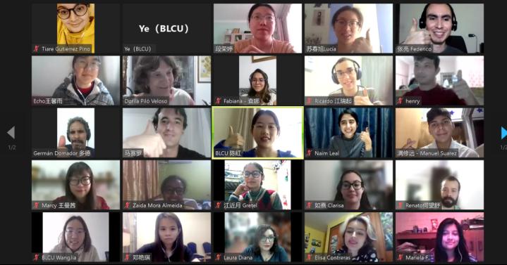 近日,由教育部中外语言交流合作中心主办、北京语言大学承办的汉语桥“美美与共:中拉文学的跨时空对话”线上团组举行开营仪式。北京语言大学国际教育管理处副处长黄潇潇、北京语言大学教师代表和来自拉美地区的100余名学员参加。