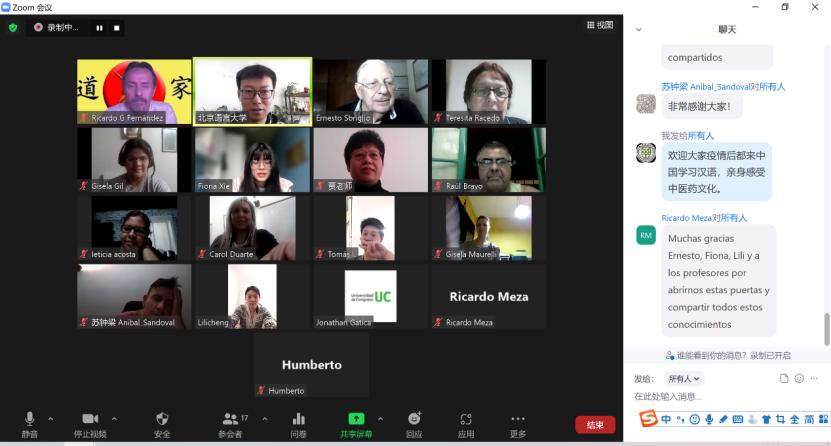 近日,由教育部中外语言交流合作中心主办,北京语言大学承办的“汉语桥∙中医瑰宝——针灸与按摩”线上团组活动圆满结束。本次线上团组适逢阿根廷国会大学中国文化周举办之际,得到了阿根廷国会大学在活动和人员组织方面的大力支持。参加活动的学员有阿根廷国会大学的学生、阿根廷及委内瑞拉其他学校和社区的中文中医爱好者150余人。