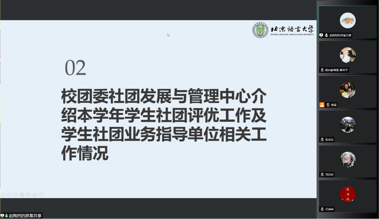 校团委社团发展与管理中心副主任赵陶然汇报了我校社团管理工作及社团活动情况,介绍了监察评优标准及年度优秀社团的评优情况。