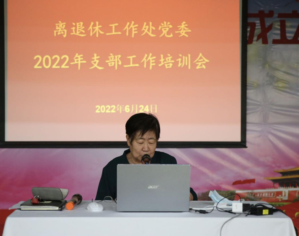6月24日,为认真贯彻落实学校加强党建工作的总体部署要求,进一步提升离退休党建工作水平,离退休工作处党委召开了2022年支部工作培训会,组织31个党支部的新一届支部书记、委员进行了工作培训。会议以线上线下相结合的方式进行,28名支部委员在离退休工作处多功能厅参加线下培训,45名支部委员线上参会。离退休工作处党委委员、离退休工作处班子成员参加培训会,会议由离退休工作处党委书记崔克娟主持。