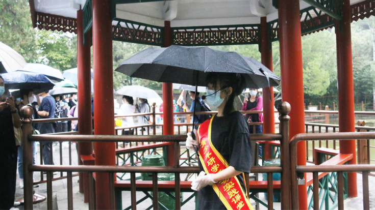 尽管服务期间天气有时不佳,志愿者们手中撑起了雨伞,但她们的仪态仍然处于最佳状态,给游客们带去了良好的观赏体验。前来参观的游客与香山工作人员都对志愿者们给予了高度的评价和充分的肯定。
