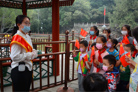 传播红色文化,讲好中国共产党的故事,在实践中服务社会、服务首都。汉语言文学本科生第一党支部与香山公园文化队党支部合作开展了红色“1+1”党支部共建项目,采用志愿服务的活动方式,自觉将“小我”青春融入“大我”新时代,彰显青年高远之志,以实际行动喜迎党的二十大胜利召开。十一假期,北京语言大学文学院香山红色故事讲解员志愿者正式上岗。